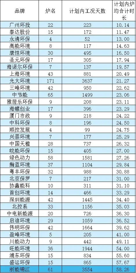 此榜單主要是衡量不同品牌旗下焚燒爐,每次非計劃停爐的平均時長,主要是與衡量故障大小狀況有關(guān),如果導(dǎo)致非停的故障較大,就必然要延長檢修時間。