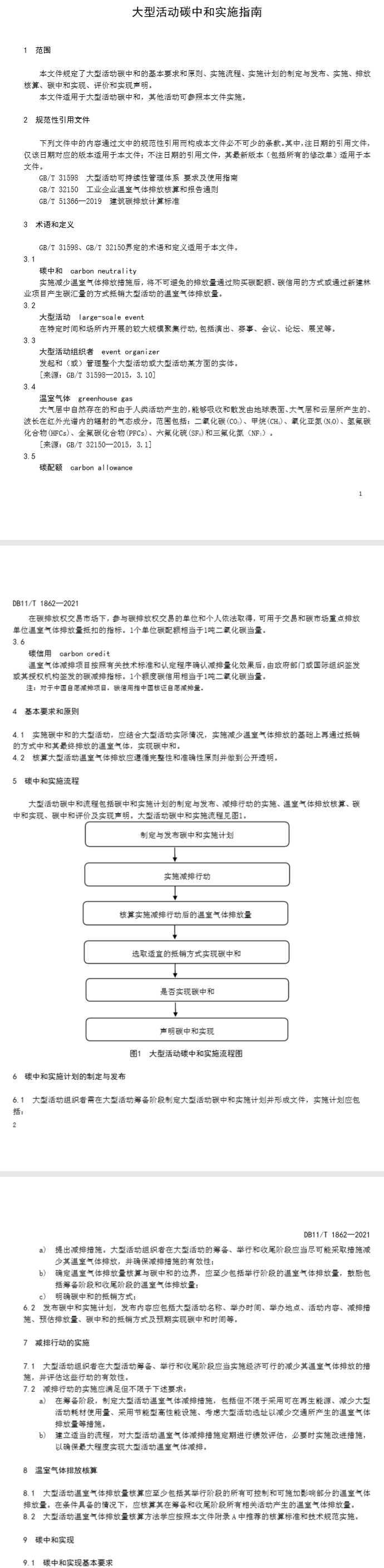 本文件規(guī)定了大型活動碳中和的基本要求和原則、實(shí)施流程、實(shí)施計(jì)劃的制定與發(fā)布、實(shí)施、排放核算、碳中和實(shí)現(xiàn)、評價和實(shí)現(xiàn)聲明。