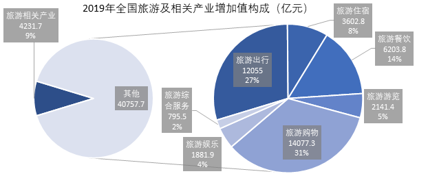 圖1 2019年全國(guó)旅游相關(guān)產(chǎn)業(yè)增加值構(gòu)成