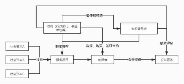 政府購買服務(wù)是指通過發(fā)揮市場(chǎng)機(jī)制作用,把政府直接提供的一部分公共服務(wù)事項(xiàng)以及政府履職所需服務(wù)事項(xiàng),按照一定的方式和程序,交由具備條件的社會(huì)力量和事業(yè)單位承擔(dān),并由政府根據(jù)合同約定向其支付費(fèi)用;主要包括服務(wù)類政府采購和工程類工程采購。項(xiàng)目須符合政府購買服務(wù)指導(dǎo)性目錄,且政府購買服務(wù)所需資金,應(yīng)當(dāng)在既有財(cái)政預(yù)算中統(tǒng)籌安排。一般由政府方編制預(yù)算,組織購買(采用公開招標(biāo)、邀請(qǐng)招標(biāo)、競(jìng)爭(zhēng)性談判等方式),最后與社會(huì)資本方簽訂合同(嚴(yán)格按照國庫集中支付管理有關(guān)規(guī)定和合同執(zhí)行進(jìn)度支付款項(xiàng))。