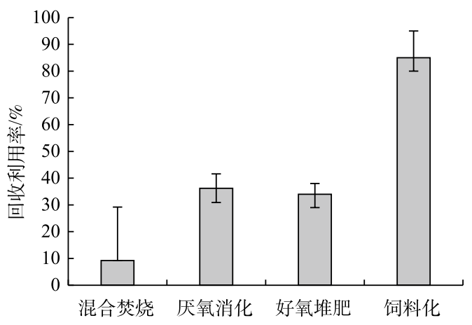 1. 廚余垃圾飼料化具有最高的回收利用率和顯著的碳減排效應(yīng);厭氧消化回收利用率較高,碳減排效應(yīng)最大;好氧堆肥的回收利用率與厭氧消化相當(dāng),但溫室氣體泄露會導(dǎo)致較高的碳排放;混合焚燒可以避免溫室氣體泄漏,但余熱發(fā)電的回收利用率較低,基本無碳減排效應(yīng)。