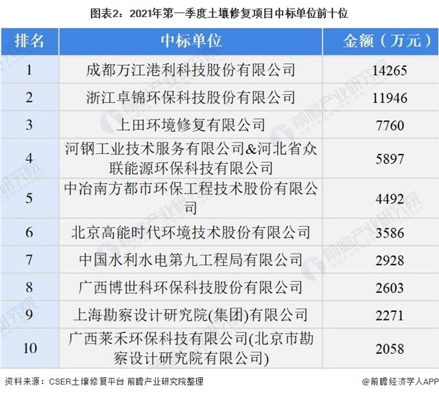 2、中國土壤修復(fù)項目中標單位排名