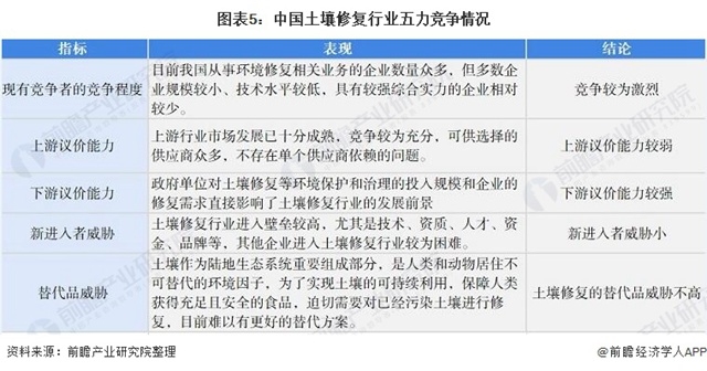5、中國土壤修復(fù)行業(yè)競爭狀態(tài)總結(jié)