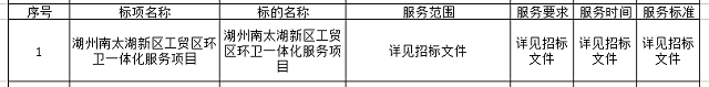 二、項目名稱: 湖州南太湖新區(qū)工貿(mào)區(qū)環(huán)衛(wèi)一體化服務(wù)項目