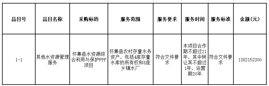 懷集縣水資源綜合利用與保護(hù)PPP項(xiàng)目(2021-MY035)中標(biāo)公告