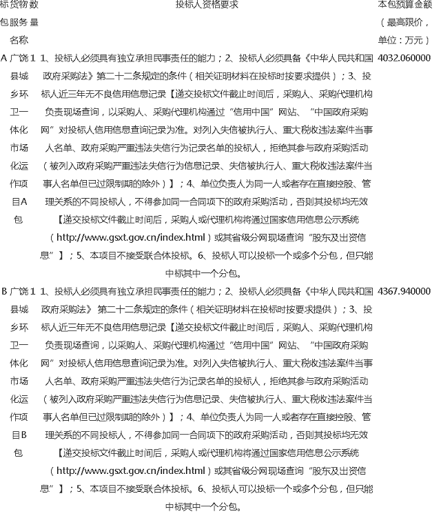 廣饒縣城鄉(xiāng)環(huán)衛(wèi)一體化市場化運作項目采購項目