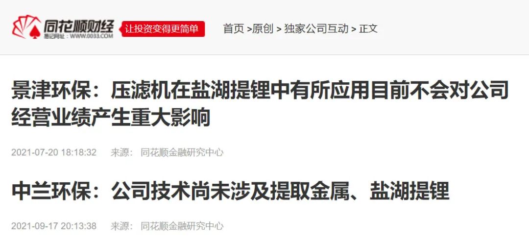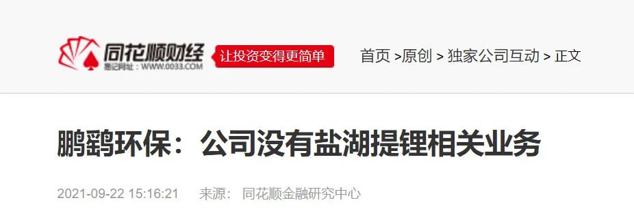 4、鵬鷂環(huán)保:公司沒有鹽湖提鋰相關業(yè)務,同花順財經(jīng),2021-09-22