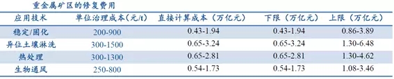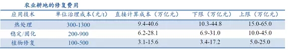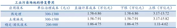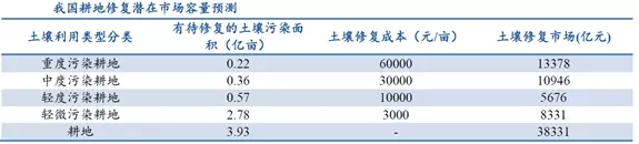 我國(guó)土壤污染類(lèi)型包括農(nóng)業(yè)耕地土壤污染、城市工業(yè)用地土壤污染以及礦區(qū)土壤污染。目前,我國(guó)待修復(fù)的污染場(chǎng)地?cái)?shù)量非常之多,保守估計(jì)超過(guò)50萬(wàn)塊。其中,耕地土壤修復(fù)投資需求在3萬(wàn)億以上,城市土壤修復(fù)投資需求1萬(wàn)億以上,礦區(qū)土壤修復(fù)投資需求可達(dá)近2萬(wàn)億。(備注:由于修復(fù)分為輕重緩急,分階段進(jìn)行,而且受到資金的制約,所以預(yù)測(cè)的投資需求,和真正會(huì)去修復(fù)的地塊,不是同一個(gè)概念)