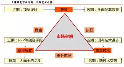 政策層面。長(zhǎng)期尺度下,政策層面最值得期待的驅(qū)動(dòng)因素是在土壤修復(fù)所有領(lǐng)域、全國(guó)大部分區(qū)域的配套性政策全面出臺(tái)。與短期尺度相比,長(zhǎng)期尺度下政府必須向治理難度更大、經(jīng)濟(jì)效益更弱的修復(fù)任務(wù)“開(kāi)刀”。