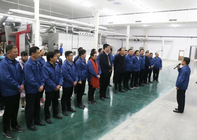 戴俊在致辭時對大力支持項目建設(shè)的盤灣鎮(zhèn)黨委、政府表示衷心的感謝,對廣大員工及工程建設(shè)者表示誠摯的慰問。他表示該項目的試生產(chǎn)是悅達(dá)紡織產(chǎn)業(yè)布局邁出的重要一步,今天實現(xiàn)試生產(chǎn)可喜可賀。他希望射陽分公司:一要高標(biāo)準(zhǔn)定位。爭做悅達(dá)紡織集團(tuán)和射陽地方工業(yè)經(jīng)濟(jì)的排頭兵,以 “高品質(zhì)、高效率、高素質(zhì)”的“三高”要求作為重要支撐;二要確保高效益。一開始就要算好成本和效益“兩本帳”,以新裝備、新工藝、新技術(shù)為支撐,接“好單”、接“難單”;三要全面統(tǒng)籌,盡早達(dá)產(chǎn)。做到統(tǒng)籌好生產(chǎn)和設(shè)備安裝,統(tǒng)籌好生產(chǎn)和安全,統(tǒng)籌好生產(chǎn)和精益管理,統(tǒng)籌好生產(chǎn)和二期規(guī)劃“四個統(tǒng)籌”。
