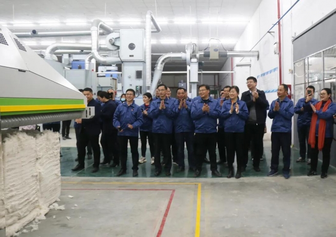 11月26日,悅達(dá)紡織集團(tuán)射陽盤灣項目舉行試生產(chǎn)儀式,標(biāo)志著該項目一期5.3萬錠經(jīng)過4個月的加速建設(shè),正式進(jìn)入試生產(chǎn)階段。悅達(dá)紡織集團(tuán)黨委書記、董事長、總經(jīng)理戴俊和盤灣鎮(zhèn)黨委書記陳進(jìn)之共同按下開車按鈕,悅達(dá)紡織集團(tuán)副總經(jīng)理、悅達(dá)棉紡公司總經(jīng)理顏國華主持儀式,盤灣鎮(zhèn)黨政主要領(lǐng)導(dǎo)及悅達(dá)紡織集團(tuán)領(lǐng)導(dǎo)班子成員、悅達(dá)棉紡公司中層以上管理人員參加儀式。
