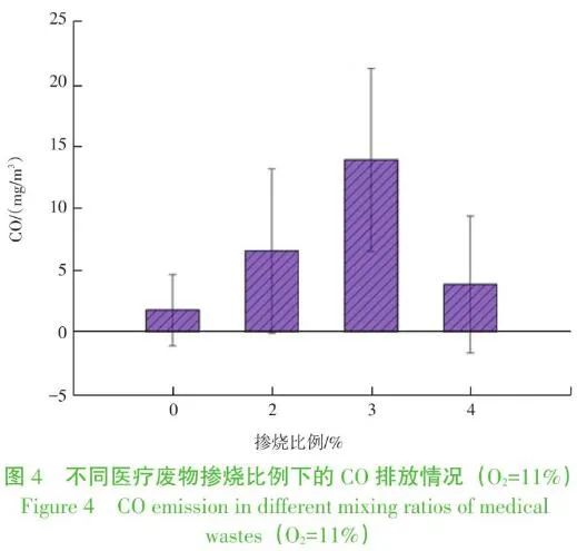 不同醫(yī)療廢物摻燒比例下CO排放情況見圖4。