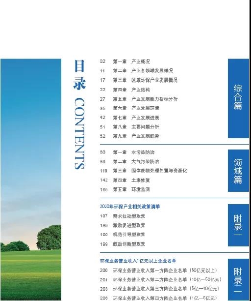 根據(jù)統(tǒng)計數(shù)據(jù),《報告》同期發(fā)布了環(huán)境治理營業(yè)收入50億元以上、10億—50元、5億—10億元、1億—5億元企業(yè)名單。