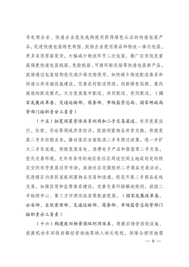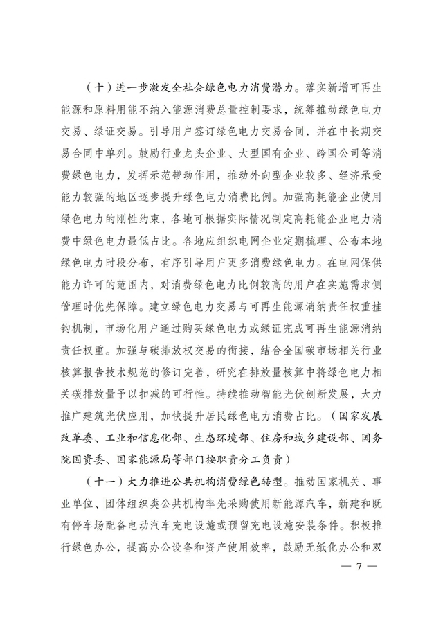 為深入貫徹落實(shí)《中共中央、國務(wù)院關(guān)于完整準(zhǔn)確全面貫徹新發(fā)展理念做好碳達(dá)峰碳中和工作的意見》和《2030年前碳達(dá)峰行動(dòng)方案》有關(guān)要求,根據(jù)碳達(dá)峰碳中和工作領(lǐng)導(dǎo)小組部署安排,國家發(fā)展改革委、工業(yè)和信息化部、住房和城鄉(xiāng)建設(shè)部、商務(wù)部、市場監(jiān)管總局、國管局、中直管理局會(huì)同有關(guān)部門研究制定了《促進(jìn)綠色消費(fèi)實(shí)施方案》?,F(xiàn)印發(fā)給你們,請結(jié)合實(shí)際,認(rèn)真抓好貫徹落實(shí)。