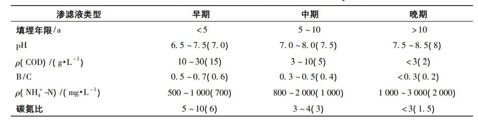 不同填埋時(shí)間的滲濾液的特征