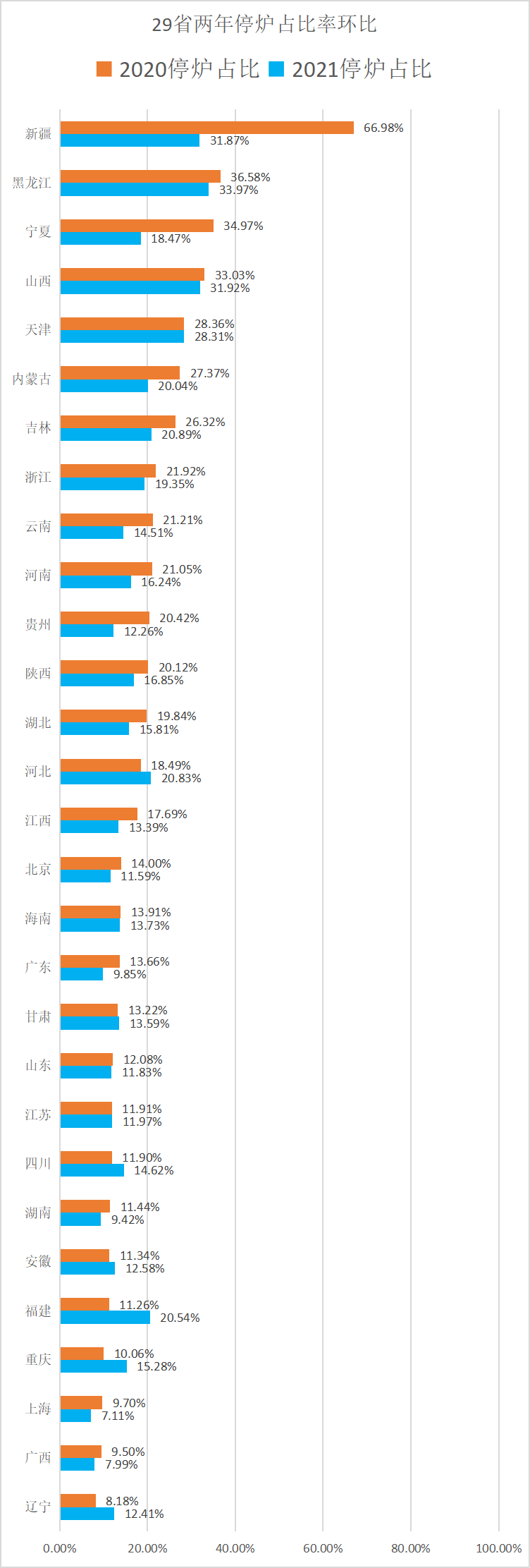 文末附贈(zèng)29省停爐占比兩年對(duì)比統(tǒng)計(jì)圖