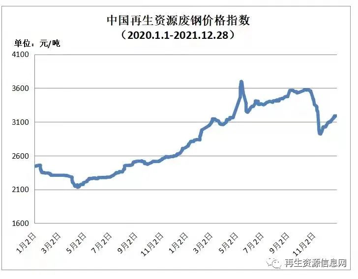 圖6 2021年我國再生資源廢鋼鐵與鋼鐵價格走勢圖