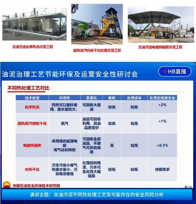 在《含油污泥不同熱處理工藝及可能存在的安全風(fēng)險分析》的主題演講中,劉光全詳細介紹了中國石油集團安全環(huán)保技術(shù)研究院開發(fā)的熱處理工藝,包括含油固廢化學(xué)熱洗、超熱蒸汽噴射干化、熱脫附、水熱干化等,并對幾種技術(shù)的特點及安全性進行了闡述與分析。