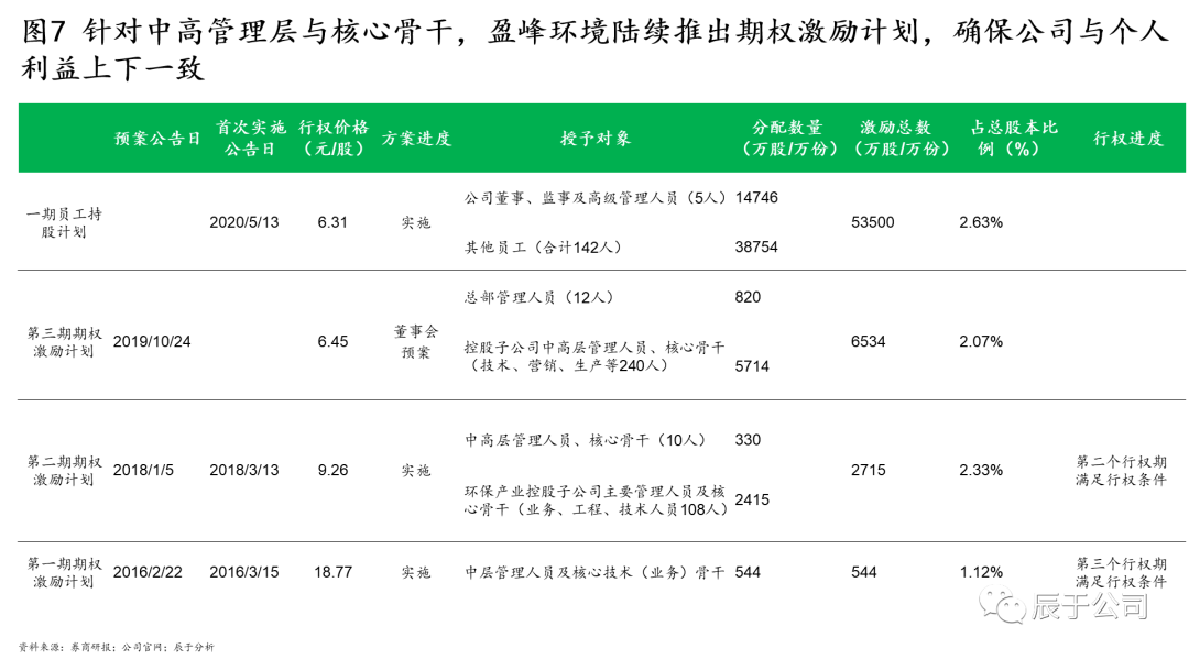 盈峰環(huán)境的掌舵人何劍鋒曾在多個(gè)場(chǎng)合下強(qiáng)調(diào)其發(fā)展的三個(gè)核心:訂單導(dǎo)向、技術(shù)創(chuàng)新、人才激勵(lì)。自2016年開(kāi)始,盈峰環(huán)境多次推出人才激勵(lì)計(jì)劃,把握獎(jiǎng)勵(lì)過(guò)去、激勵(lì)未來(lái)的核心觀念,不斷提高激勵(lì)總額度、擴(kuò)大激勵(lì)對(duì)象與范圍、優(yōu)化業(yè)績(jī)考核要求,既完善了員工薪酬結(jié)構(gòu),提升了員工積極性與穩(wěn)定性,也實(shí)現(xiàn)了治理結(jié)構(gòu)的優(yōu)化,保障管理層與公司利益的長(zhǎng)期一致性(見(jiàn)圖7)。
