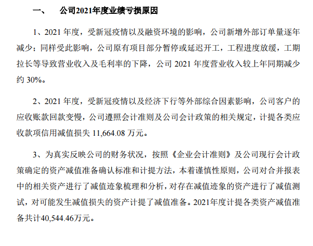 而這些,都可以看做是PPP暴雷后的次生危害,一直延續(xù)到了現(xiàn)在。這種影響,即使在企業(yè)完成混改后,也仍然需要很長(zhǎng)時(shí)間才能消化。比如,節(jié)能鐵漢就表示,長(zhǎng)達(dá)兩年多的經(jīng)營(yíng)困境,中節(jié)能集團(tuán)年初完成并購(gòu)后在管理方面做了大量的融合工作,公司在報(bào)告期內(nèi)仍處于修復(fù)狀態(tài),直接影響了公司經(jīng)營(yíng)。如果說(shuō)行業(yè)屬性是根本原因,PPP暴雷是最大變量,那么新冠疫情就是“黑天鵝”和“灰犀?!?,使得環(huán)保行業(yè)“屋漏偏逢連夜雨”,進(jìn)一步加劇了情況的嚴(yán)重程度。比如,博世科就表示,受經(jīng)濟(jì)下行、全球新冠疫情反復(fù)、環(huán)境治理行業(yè)市場(chǎng)競(jìng)爭(zhēng)加劇等因素影響,報(bào)告期內(nèi)公司國(guó)內(nèi)外業(yè)務(wù)均受到了不同程度的影響,獲取訂單及項(xiàng)目實(shí)施不及預(yù)期。博天環(huán)境也解釋說(shuō),2021年度,受新冠疫情以及融資環(huán)境的影響,公司新增外部訂單量逐年減少;同樣受此影響,公司原有項(xiàng)目部分暫?;蜓舆t開(kāi)工,工程進(jìn)度放緩,工期拉長(zhǎng)等導(dǎo)致?tīng)I(yíng)業(yè)收入及毛利率的下降,公司2020年年度營(yíng)業(yè)收入較上年同期減少約30%。還有,2021年度,受新冠疫情、經(jīng)濟(jì)下行等外部綜合因素影響,博天客戶的應(yīng)收賬款回款變慢,公司遵照會(huì)計(jì)準(zhǔn)則及公司會(huì)計(jì)政策的相關(guān)規(guī)定,還計(jì)提各類應(yīng)收款項(xiàng)信用減值損失約21,900萬(wàn)元。總之,疫情對(duì)環(huán)保企業(yè)的影響是全方位的,既有新增訂單的影響,也有現(xiàn)有項(xiàng)目工程的影響,還有應(yīng)收賬款回款速度的影響,給環(huán)保企業(yè)造成了不小的麻煩。