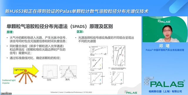 單顆粒氣溶膠粒徑分布光譜法(SPADS)——正是Palas專為提升顆粒物監(jiān)測數(shù)據(jù)可靠性推出的技術(shù)方案。鄧珺表示,選擇單粒子測量主要有兩大理由:一是測量單個顆粒光學(xué)信號,可具體表征出單顆粒粒子特征,包括直徑、表面、體積、質(zhì)量和濃度以及顆粒數(shù);二是單個顆粒光散射信號不易受粒子形狀、直徑、折射率影響。