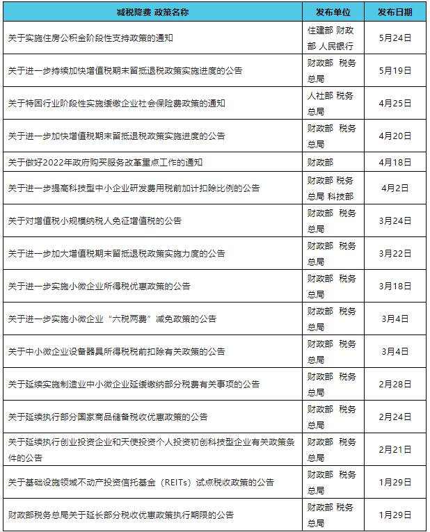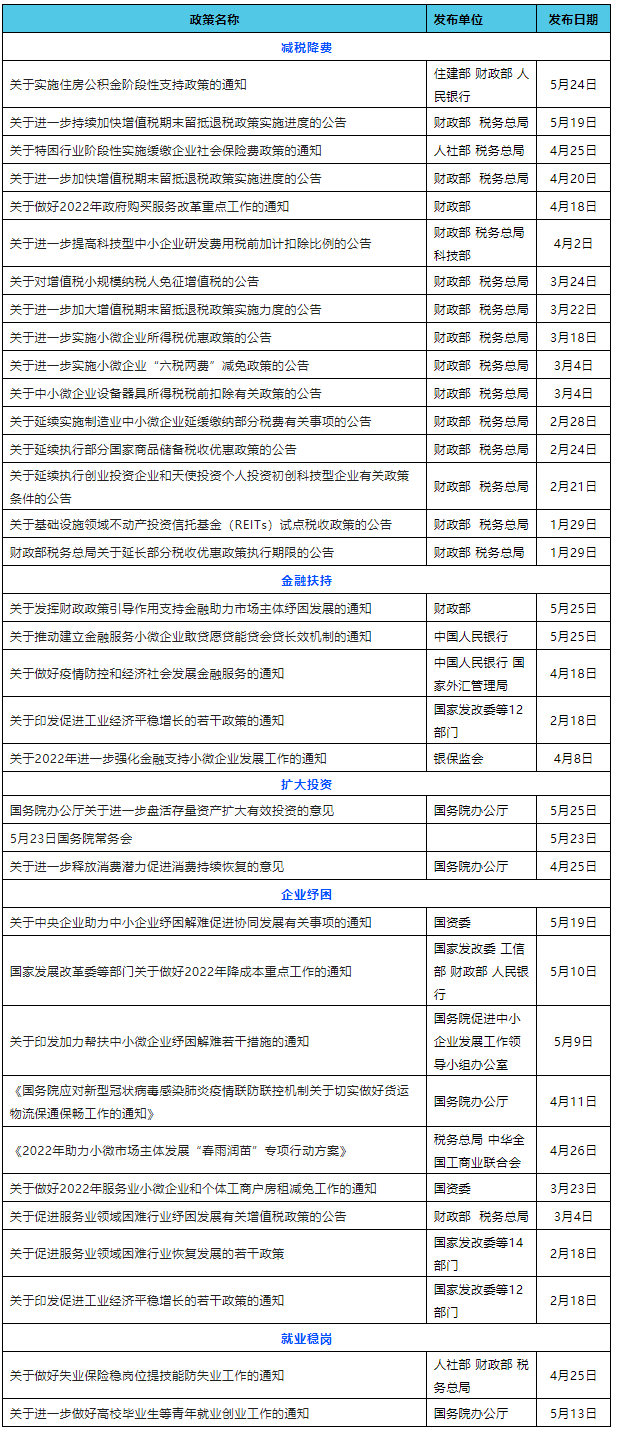 今年以來國家穩(wěn)經(jīng)濟政策匯總表