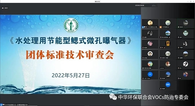2022年5月27日,中華環(huán)保聯(lián)合會組織的《水處理用節(jié)能型鰓式微孔曝氣器》團(tuán)體標(biāo)準(zhǔn)(初稿)技術(shù)審查會以視頻會議形式順利召開。該標(biāo)準(zhǔn)通過技術(shù)審查,審查組由五位專家組成。中華環(huán)保聯(lián)合會秘書長助理吳克食參加會議。