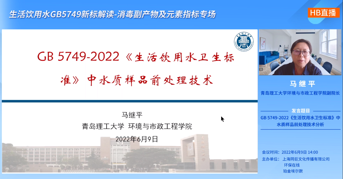 6月9日下午,由同巨傳媒、環(huán)保在線、珀金埃爾默共同主辦的【生活飲用水GB 5749新標(biāo)解讀-消毒副產(chǎn)物及元素指標(biāo)專場】線上直播論壇準(zhǔn)時(shí)開播。來自中疾控環(huán)境所水質(zhì)量與健康監(jiān)測室主任張嵐研究員、珀金埃爾默無機(jī)產(chǎn)線ICP-MS技術(shù)支持劉莉、青島理工大學(xué)環(huán)境與市政工程學(xué)院副院長 校分析測試中心主任馬繼平參加了此次線上論壇,并針對GB 5749新標(biāo)準(zhǔn)的內(nèi)容作了相關(guān)解讀。整場直播精彩紛呈、干貨不斷,專家們都分享了哪些豐富內(nèi)容?快跟隨小編來回顧一遍!