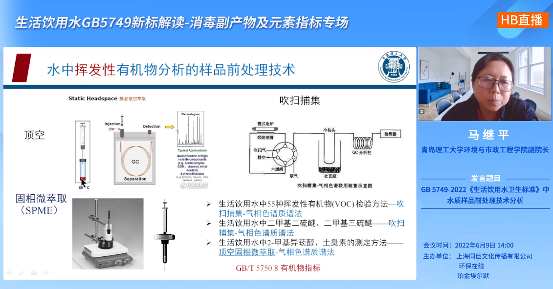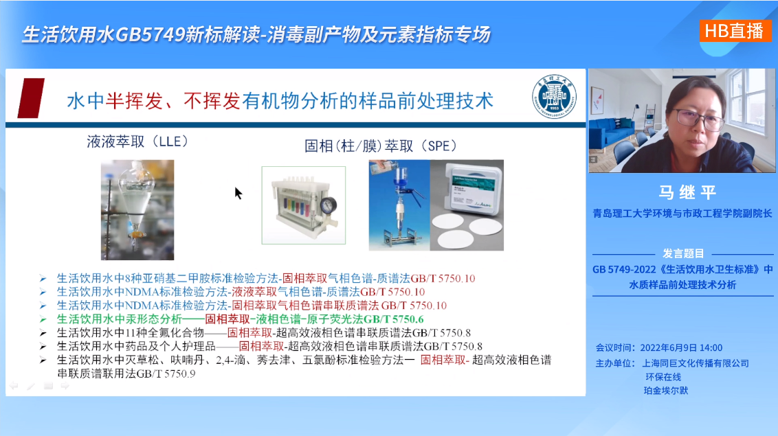 青島理工大學(xué)環(huán)境與市政工程學(xué)院副院長,校分析測試中心主任馬繼平主要介紹了GB 5749新標(biāo)準(zhǔn)中有關(guān)重金屬和有機(jī)物以及形態(tài)分析方面的水質(zhì)樣品前處理技術(shù),重點(diǎn)介紹了測定水中消毒副產(chǎn)物等有機(jī)物的樣品前處理技術(shù)。馬主任這場匯報(bào)內(nèi)容詳實(shí)具體、知識點(diǎn)滿滿,小編提煉重點(diǎn)如下: