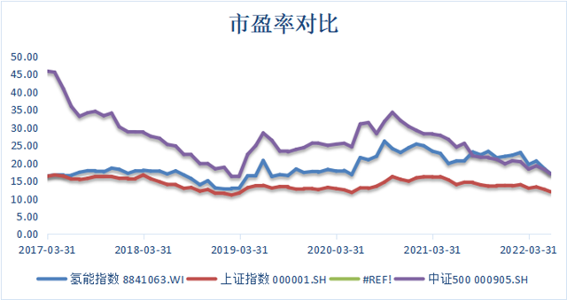 市凈率(圖5)是指每股股價與每股凈資產(chǎn)的比率,市凈率是評估一家上市公司的是否具備投資安全系數(shù)的核心財務(wù)指標(biāo),從2021年5月開始,氫能指數(shù)的市凈率遠超上證A股和中證500,說明相對于其他指數(shù)氫能指數(shù)是更安全的投資。