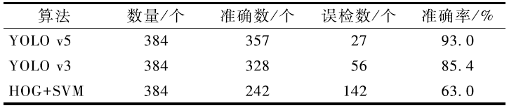 將基于YOLO v5算法的垃圾分類(lèi)識(shí)別結(jié)果與YOLO v3深度學(xué)習(xí)算法以及傳統(tǒng)的機(jī)器學(xué)習(xí)算法HOG+SVM對(duì)比,結(jié)果如表1所示。本研究使用了384種垃圾進(jìn)行算法的檢測(cè)。從表1中可知:YOLO v3深度學(xué)習(xí)精度低于YOLO v5算法,傳統(tǒng)機(jī)器學(xué)習(xí)的方法HOG+SVM 準(zhǔn)確率更低,只有63%。YOLO v5算法檢測(cè)結(jié)果準(zhǔn)確,在數(shù)據(jù)集豐富的情況下準(zhǔn)確率高。本研究對(duì)垃圾圖像進(jìn)行了訓(xùn)練,準(zhǔn)確率可達(dá)到93.0% ,因此可用于實(shí)際應(yīng)用。