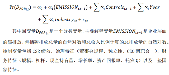 具體地,作者主要提出以下幾個問題:(1)碳風險對并購決策是否重要,尤其是跨境目標的選擇?(2a)收購方的碳風險是否與收購公告的市場反應(yīng)有關(guān)?(2b)排放對收購公告回報的影響是否因公司的 CSR 聲譽而減弱或增強?