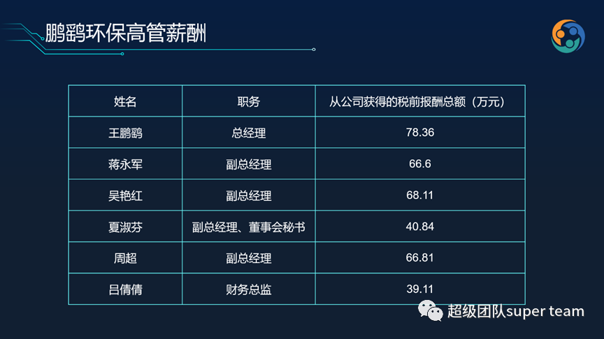 鵬鷂環(huán)保一直強(qiáng)調(diào)的是以人為本, 從鵬鷂環(huán)保的高管薪酬來(lái)看,如果鵬鷂把自己定義為一個(gè)區(qū)域型企業(yè),鵬鷂的高管薪酬絕對(duì)不算低,絕對(duì)給出了對(duì)高管人才的重視。而且這僅為上市公司公開(kāi)數(shù)據(jù)。