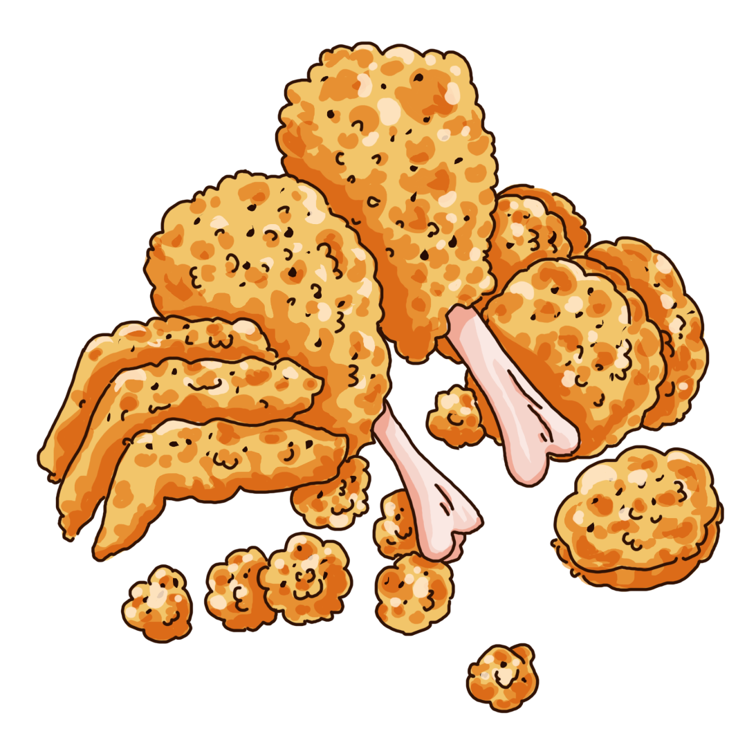 沒吃完的:雞腿&雞翅——扔進(jìn)濕垃圾;包裝紙——扔進(jìn)干垃圾桶