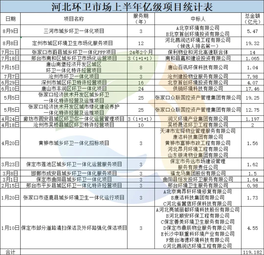 8月8日,超19億元的定州市城區(qū)環(huán)境衛(wèi)生市場(chǎng)化服務(wù)項(xiàng)目公布中標(biāo)候選人公示,河北昌潤(rùn)達(dá)環(huán)境工程有限公司排名第一;8月9日,約5.5億元三河市城鄉(xiāng)環(huán)衛(wèi)一體化項(xiàng)目又被北京環(huán)境有限公司和北京首創(chuàng)環(huán)境投資有限公司攜手?jǐn)孬@。至此,河北省今年已開標(biāo)的億級(jí)環(huán)衛(wèi)項(xiàng)目總金額已超119億元,加上在招標(biāo)項(xiàng)目,河北省今年環(huán)衛(wèi)項(xiàng)目的釋放量已超130億元!不僅如此,進(jìn)入2022年之后,河北省在生活垃圾末端處置方面的發(fā)展也較為迅速,主要體現(xiàn)在生活垃圾焚燒項(xiàng)目、建筑垃圾資源化利用項(xiàng)目等方面。而這一切的“大爆發(fā)”,和地方“十四五”時(shí)期各項(xiàng)規(guī)劃及相關(guān)政策有密切聯(lián)系??梢源竽懙仡A(yù)測(cè),未來(lái)5年,河北將是環(huán)衛(wèi)企業(yè)競(jìng)相爭(zhēng)奪的“圣地”。項(xiàng)目釋放量突破130億,國(guó)資控股企業(yè)大放異彩