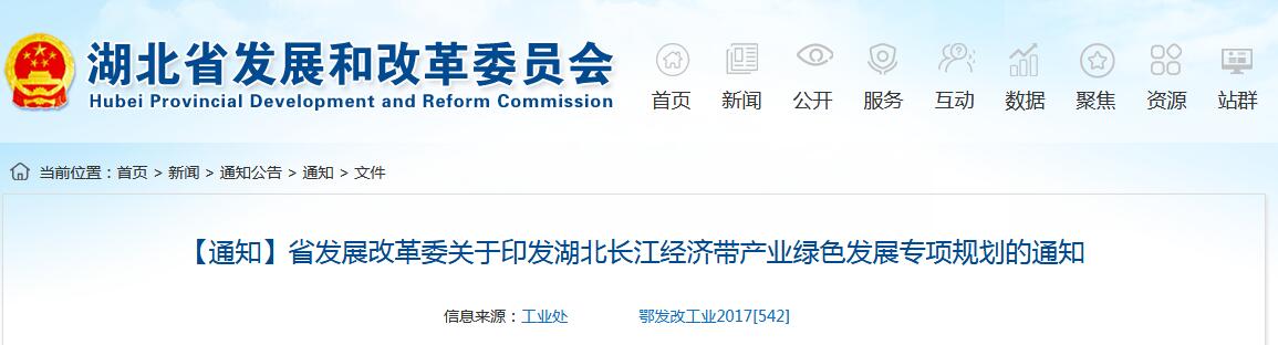 省發(fā)展改革委關(guān)于印發(fā)湖北長江經(jīng)濟帶產(chǎn)業(yè)綠色發(fā)展專項規(guī)劃的通知