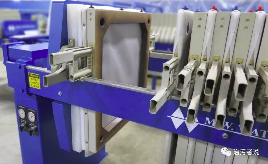 作為污泥脫水設(shè)備的一類(lèi),板框式壓濾機(jī)與濾帶壓濾機(jī)的脫水原理是一致的,但是板框在設(shè)計(jì)上與濾帶壓濾機(jī)是不一樣的。濾帶壓濾機(jī)是通過(guò)輥筒帶動(dòng)濾帶連續(xù)運(yùn)行,污泥在濾袋上連續(xù)運(yùn)行脫水的,但是板框的是間斷運(yùn)行的,進(jìn)入一部分泥后,壓濾完成后,再進(jìn)行下一次進(jìn)泥脫水。