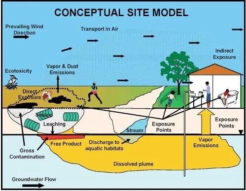 場(chǎng)地調(diào)查是從各種來(lái)源收集特定場(chǎng)地的信息和數(shù)據(jù)以表征受污染場(chǎng)地的物理,生物和化學(xué)系統(tǒng)。場(chǎng)地概念模型(CSM)是綜合了所有場(chǎng)地的歷史信息,水文地質(zhì)特征,現(xiàn)場(chǎng)及環(huán)境受體的調(diào)查集成的一個(gè)三維的場(chǎng)地圖,用以說(shuō)明污染物分布,污染釋放機(jī)制,遷移途徑,暴露途徑和潛在受體。
