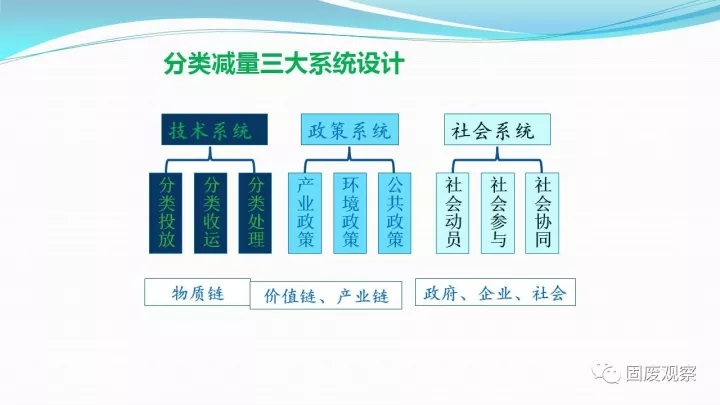 第二部分主要介紹2010年以后上海市推進垃圾分類的主要做法。2010年,世博會臺灣館給我們展示了一個讓人震撼的垃圾分類結(jié)果,上海開始火熱的推動垃圾分類工作?;舅悸诽岢隽艘?guī)劃引領(lǐng)、政府主導(dǎo),市場運作、社會參與。提出這些思路是因為到現(xiàn)階段,更加注重到了解決全體系問題對垃圾分類的重要性。