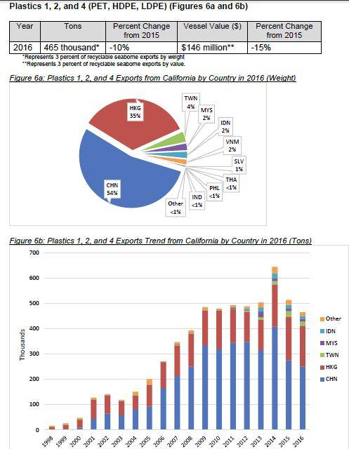 因此,徐海云為中國的回收再生領(lǐng)域“打抱不平”:“目前,中國是最大的塑料生產(chǎn)國,也是最大的消費(fèi)國,但人均消費(fèi)量不到發(fā)達(dá)國家的一半。目前,塑料瓶的回收率,歐盟的數(shù)據(jù)是50%(2015年),美國是28%(2016年),日本是92%(2015年),中國沒有權(quán)威的統(tǒng)計數(shù)據(jù),但我認(rèn)為一定比他們高。易拉罐方面,歐盟回收率目標(biāo)是73%,提出到2025年達(dá)到75%,但這個目標(biāo),中國一定也超過了。”在美國加州做的出口到中國廢塑料統(tǒng)計中,可以看到中國廢塑料回收利用情況與其他幾個國家的對比情況: