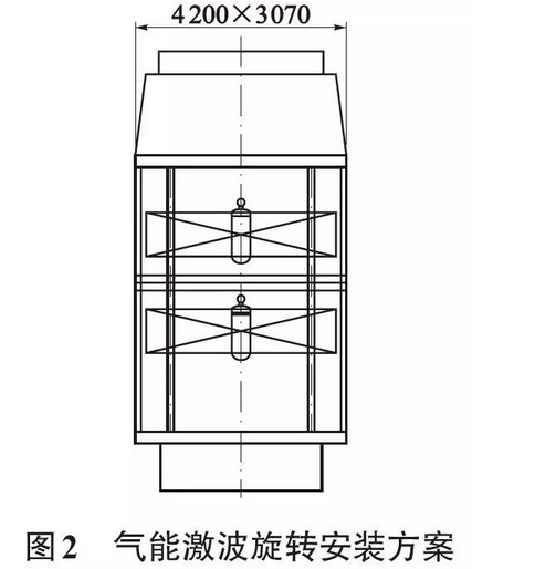 最終確定方案為在兩層受熱面中間布置2臺氣能激波旋轉(zhuǎn)吹灰器,安裝方案見圖2。