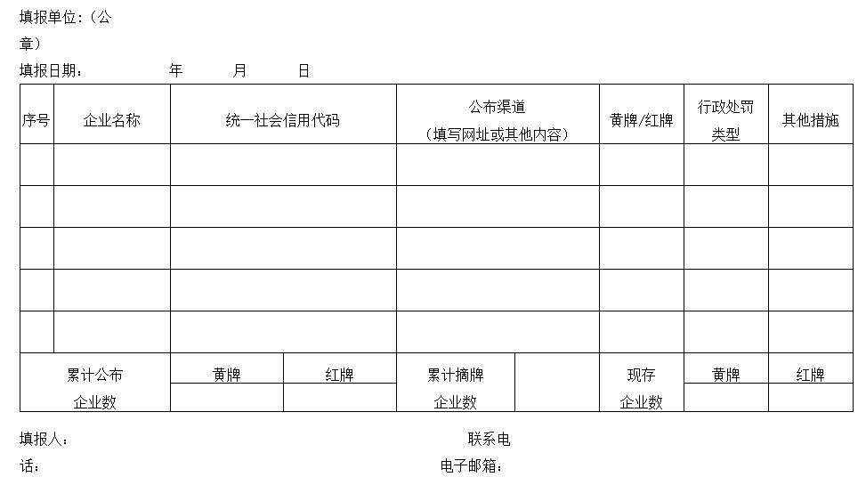 第十三條 市級(jí)環(huán)境保護(hù)部門應(yīng)當(dāng)每季度填報(bào)《“黃紅牌”企業(yè)公示情況表》(附件)并附相關(guān)行政處罰文書等報(bào)省環(huán)境保護(hù)廳備案。
