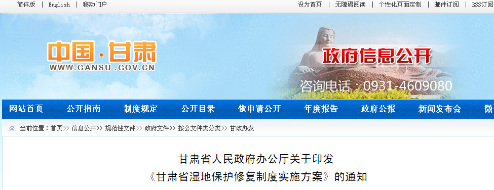 2.建立濕地分級體系。根據(jù)生態(tài)區(qū)位、生態(tài)系統(tǒng)功能和生物多樣性,將全省濕地劃分為國家重要濕地(含國際重要濕地)、省級重要濕地和一般濕地,列入不同級別濕地名錄,并建立定期更新的分級動態(tài)管理體系。由省林業(yè)廳會同省直有關部門根據(jù)國家重要濕地(含國際重要濕地)名錄認定標準和管理辦法,研究制定《甘肅省重要濕地確認指標》和《甘肅省重要濕地管理辦法》,發(fā)布省級重要濕地和一般濕地名錄。明晰國家重要濕地、省級重要濕地和一般濕地的事權劃分,認定后的重要濕地設立標示牌,標明濕地面積、類型、四至范圍、主要保護物種、保護修復目標、主管部門和管理單位、舉報電話等。(省林業(yè)廳牽頭,省國土資源廳、省環(huán)保廳、省水利廳、省農牧廳等按職責分工負責)