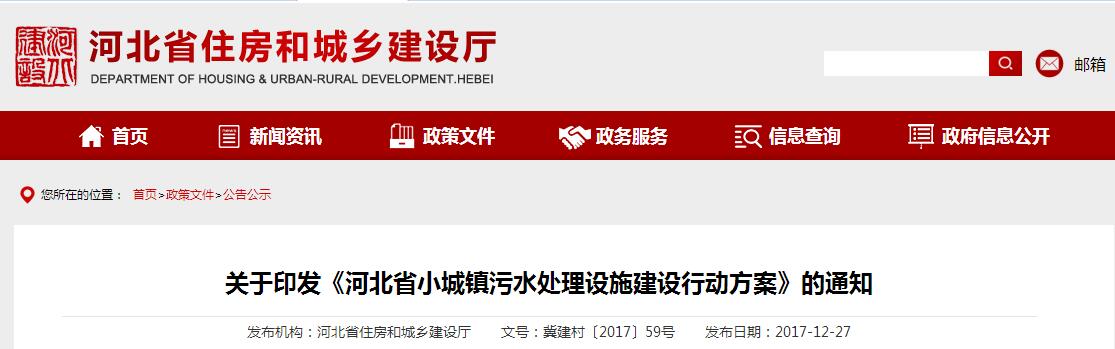 關(guān)于印發(fā)《河北省小城鎮(zhèn)污水處理設(shè)施建設(shè)行動(dòng)方案》的通知