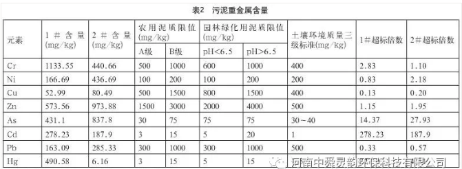 從表2可以看到脫硫污泥中含有Cr、Ni、Cu、Zn、As、Cd、Pb、Hg等重金屬元素。而且我們可以看出1#污泥樣品中檢測的Cr、Ni、Cu、Zn、As、Cd、Pb、Hg8種重金屬中有5種重金屬Cr、Zn、As、Cd、Hg超標,2#污泥樣品有6種重金屬Cr、Ni、Zn、As、Cd、Hg超標。其中的As、Cd、Hg的超標倍數(shù)非常大,已經(jīng)大大超出農用污泥的標準限值,如果不加處理,直接排放,會對環(huán)境污染造成很大的危害,所以必須對污泥進行重金屬處理,降低環(huán)境危害性。