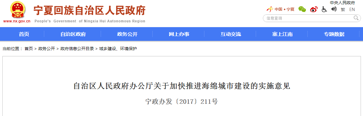近日,在寧夏回族自治區(qū)人民政府獲悉關(guān)于加快推進海綿城市建設(shè)的實施意見,全文如下: