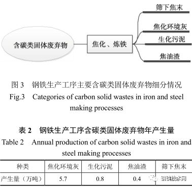 圖 3 為各工序含碳類固體廢棄物細(xì)分情況,包括篩下焦末、焦化環(huán)境灰、生化污泥和焦油渣。