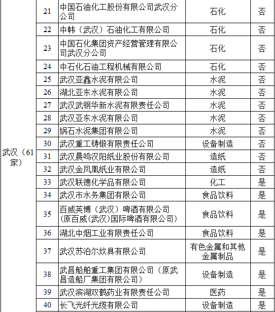 湖北省2017年納入碳排放配額管理企業(yè)清單