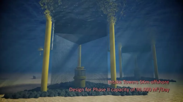 海水首先進(jìn)入一個(gè)裝有水母過濾裝置的取水塔,這個(gè)取水塔距離廠房6公里以外的水域,同時(shí)還備有石油泄露污染警報(bào)浮標(biāo)。