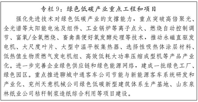 ?。┚G色低碳產(chǎn)業(yè)。順應(yīng)新能源技術(shù)應(yīng)用系統(tǒng)化、模塊化、分布式方向,優(yōu)化風(fēng)能、太陽能布局,推動(dòng)生物能的推廣應(yīng)用。把握全球新能源汽車輕量化、智能化的科技發(fā)展趨勢,完善地方性標(biāo)準(zhǔn)規(guī)范和政策體系,推進(jìn)純電動(dòng)、混合動(dòng)力及低能耗汽車技術(shù)創(chuàng)新。加快節(jié)能環(huán)保制造業(yè)與服務(wù)業(yè)聯(lián)動(dòng)發(fā)展,促進(jìn)形成綠色產(chǎn)業(yè)結(jié)構(gòu)、綠色增長方式和綠色消費(fèi)模式,助力“生態(tài)山東”和“綠色山東”建設(shè)。到2020年,建設(shè)30個(gè)循環(huán)經(jīng)濟(jì)示范基地、300個(gè)示范企業(yè),培育發(fā)展一批新能源和節(jié)能環(huán)保企業(yè)。